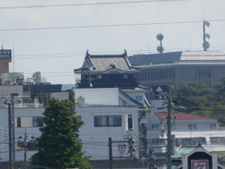 矢作橋/矢作川を渡る道路は今でも国道1号線で、写真は矢作橋の左側歩道から岡崎城の天守閣を望遠で撮っています。この天守閣は昭和34年(1959)に復興されました。(by Wiki)
