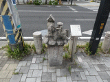 石像は四角い形をしていますが、あるいは同朱印の印章を表しているのでしょうか? 胴には駒牽朱印の文字も有ります。説明文には、
