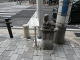これで伝馬通りの石像は全て終了です。先の左折地点、伝馬通1丁目まで戻り、左折して横断歩道を渡ります。街路灯も独特な形をしています。LED照明は小型でしかも融通が利きますから、これからは楽しみですよね?