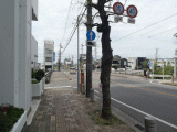 旧道は此処を左折します。正面の道は手前の道よりも、道幅が狭く成っています。また交差点左手前に、金の草鞋ポスト〇(〇+ぬ)と道標が在ります。但し、道標の表面は車道側を向いています。(苦笑)
