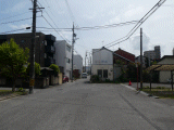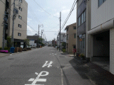 87)紛らわしい看板/電柱:細くなるとすぐ、左手、道路東側