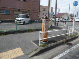 90)金の草鞋ポスト〇(〇+た)と松葉総門跡碑/十字路:国道を横断すると、交差点左奥、徒歩142分、道路南側