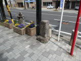 写真は伝馬交差点の左奥から右手前方向を撮っています。東本陣跡は伝馬交差点右手前の花一生花店辺りに有る筈なのですが、前回も今回も目ぼしい物は見つかりませんでした。