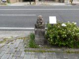 石像の左には、SUS製の説明板が建っています。石像には茶壷が彫られており、その胴にはお茶つぼ道中の文字も有ります。説明板の説明文には、