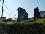 同交差点右奥に、3つの黒い石碑とその右に明治用水開渠記念碑石柱(写真右外)が在ります。一番左の黒い石碑には、通水百年記念碑、清流保悠久、と彫られている様です。