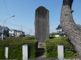 43)読めない石碑/明治川神社交差点:寺を罷ると、交差点右手前、徒歩312分、道路北側