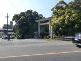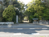 神社を退出し車道に出ると、その南方には別の入口が有ります。右側から順に、教化史蹟明治用水石碑、石鳥居、社記高札、駐車場と並んでいます。ですから、こちらの方はマイカー客向けのそれの様です。