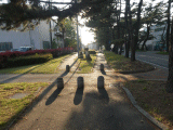 92)片目の鯉モニュメント:モニュメントの先、左側歩道、反対側、道路南側