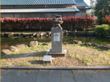 また、知立神社の御手洗池には、娘の目が治るようにと毎日神社にお祈りしたところ片目が治り、それから御手洗池の鯉が片目になったという昔話『片目の鯉』が語りつがれています、とあります。またモニュメント左手前の石板の説明文には、