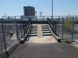 階段上を右折すると、目の前には国道1号線の右側歩道が在ります。小さな階段を上って、次いで左折します。