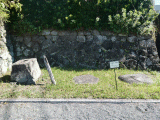 杭の右に石(礎石?)が二つ、左に一つ有ります。杭は損傷が激しく、清見寺の境に・・・傍(扁は片)示杭があった・・・と読めます。確かにこの辺り、山と海は近い→関所。