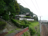 写真は東海道線を渡る跨線橋の上から撮っています。写真左側の階段を上って、清見寺に参拝します。