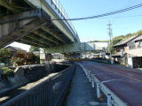 合流した道路を横断歩道で渡ります。その先は波多打川(はたうちがわ)で、国道1号線はこの川に橋を架けて道幅を稼いでいます。