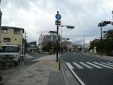 同交差点は変形四差路で、国道1号線は右にカーブしますが旧道は直進します。交差点左手前(東)に大磯照ヶ崎海水浴場石碑、左奥(西)に←海水浴場発祥の地ポストが有ります。