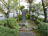 14)新島襄終焉の地:国道1号線に沿って緑地帯を進むと、左手、徒歩43分、道路北側