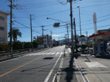 旧道は此処を左折しますが、ガイドは渡しの西岸を見る為に此処を右折します。この交差点は以前はビジネス高校前交差点と呼称していました。