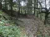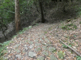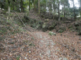 旧道は左に折れます。旧道左手には、石垣が現れています。