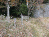 休憩地の東側、北の斜面に近い方に同石碑が建っています。鏡肌、鏡面を持つ鏡石は、この石碑の上方に在るのでしょう。