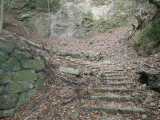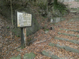 旧道は此処からは石段です。石段は右に緩やかにカーブしています。前方右手には、説明板も窺えます。
