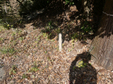 旧道の右手に白い同ポスト(木の杭)が建っています。前回は見付からなかったので、あるいは最近新成されたのかも知れません。右側面には江戸へ百八里、左側面には京へ十七里、とあります。