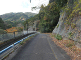右側の斜面が迫って来る為、右側歩道は車道から高度を取る様に成ります。