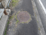 国道1号線左側歩道に、同マンホールが在ります。花の上に雉が飛んでいます。土山町の町の花は「茶」、町の木は「スギ」、町の鳥は「キジ」だそうです。土山町は2004年10月1日に、合併して甲賀市と成っています。