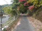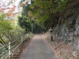 右入すると、道は上り坂と成ります。左下に見える道は、先の一般道路です。