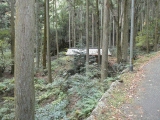 旧道は林間を抜けて行きます。左が谷で、右が斜面です。旧道は鈴鹿川の北岸に設けられています。