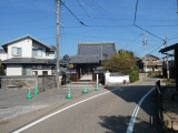 写真中央が延命寺です。寺を避ける為に、道路は右に避けています。