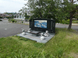 ト字路交差点の右奥に同モニュメントが有ります。表示板中央には川越の風景、手前から輦台、肩車二人、籠です。左側には、箱根八里は馬でも越すが越すに越されぬ大井川の歌。