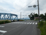 大井川の土手に敷かれた県道342号線を歩くと、大井川橋東交差点に至ります。交差点を左折して大井川橋を渡ります。
