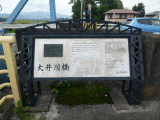 大井川は橋で渡ります。橋の袂左手前には、大井川橋と書かれた説明板モニュメントが有ります。モニュメントには、