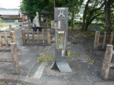 道標の後ろには、義人仲田源蔵石像と東屋も覗えます。