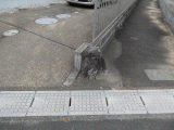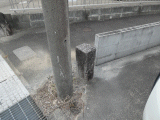こちらの道標は丸みのある石で、右のぼ、と彫られています。しかし残念ながら道路面が上昇した為、下半分が埋もれています。