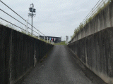上り坂を登り、国道の南側に出ます。道路の右側は国道1号線です。安心な事に、この迂回路はマピオンにも明記されています。