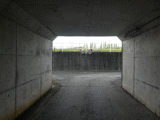 トンネルを出ると突当りで、迂回路は此処を右折します。