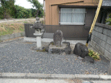 17)つくばい、山神石碑、石灯籠:右曲りの先、右手、徒歩48分、道路北側