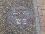 3)カラフルなマンホール:笹井屋の先、右手、道路西側