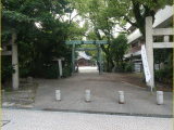 入口の左右に(変わった形の鳥居+外側に石灯籠)のセットが一対有ります。左側セットの外側には、縣社諏訪神社社碑が有ります。灯籠の胴には奉燈、台座には高砂町中、と彫られています。