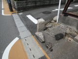 ト字路交差点右手前に背の低い、古い道標が建っています。残念ながら、文字はかなり不鮮明です。