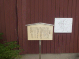 道標先のト字路交差点を右折すると、右側の壁に同立札と同地図が貼られています。立札の説明文には、大正十二年(一九二三)の水害まではこの横の道が水沢方面に通じる道路であった。このため、今から約二百年ほど前に