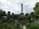 43)稲垣末吉翁頌徳碑と忠魂碑/四日市市立日永小学校:寺の先、右手、徒歩95分、道路西側