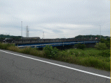 内部川に架かる、青い橋です。内部橋の両側には歩道が有ります。右側歩道を歩きます。内部川はこの後東に流れて、鈴鹿川と合流します。