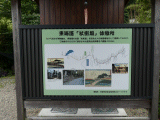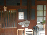 同博物館の東側には、休憩所が設けられています。ガイドも此処で一休み。同館の向いには、同案内板が貼られています。また案内板の上には、風鈴も吊るされています。