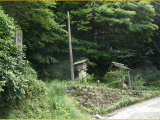 写真は、石薬師宿側から撮っています。(短いですが)かなり急な坂である事が分かります。屋根付芭蕉句碑は、写真中央に在ります。急な坂は未だ少し続きます。