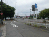 此処には国道1号線の左側歩道が有りません。左に迂回し、側道の左側歩道を歩きます。