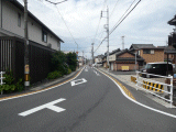 旧道は変形丁字路を左折します。右から来る道はかなり細い。突当りの先は四日市あすなろう鉄道内部線です。
