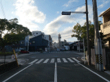 左折すると、くすのき通りに突当ります。正面は彦坂興業です。此処を右折します。