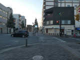 交差点右奥に、豊橋市道路元標が有ります。(信号機支柱の右側)旧道は此処を直進しますが、ガイドは大手門跡に立寄る為此処を右折します。