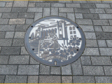 TOYOHASHIと記されたマンホールが在ります。手前から順に市の花つつじ、市電、市役所です。